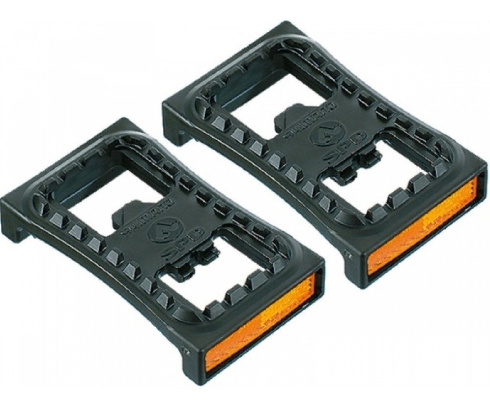 Платформы-накладки SHIMANO для контактных педалей SPD, Y41R98070. Эти платформы предназначены для установки на контактные педали стандарта SPD, чтобы на них можно было комфортно ездить в обычной повседневной обуви.