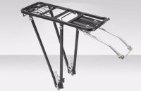 Задний багажник из алюминия с регулировкой высоты. Подойдет для установки на велосипед с колесами диаметром до 28 дюймов, рама которого оборудована креплениями багажника. Выдерживает значительные грузы, сзади расположена пластина для крепления габарита. Рамка на пружине поможет закрепить небольшой легкий груз без дополнительных приспособлений.