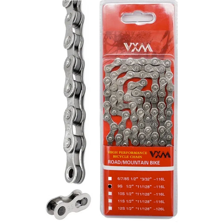 Цепь VXM V-9S, 9 скоростей, 116 звеньев, с замком, для горных и шоссейных велосипедов, совместима с системами Shimano, Campagnolo, SRAM.