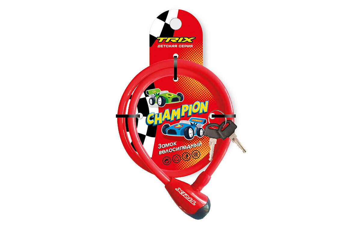 Замок велосипедный, трос стальной, с ключами 12х800мм, в пластиковой оболочке
