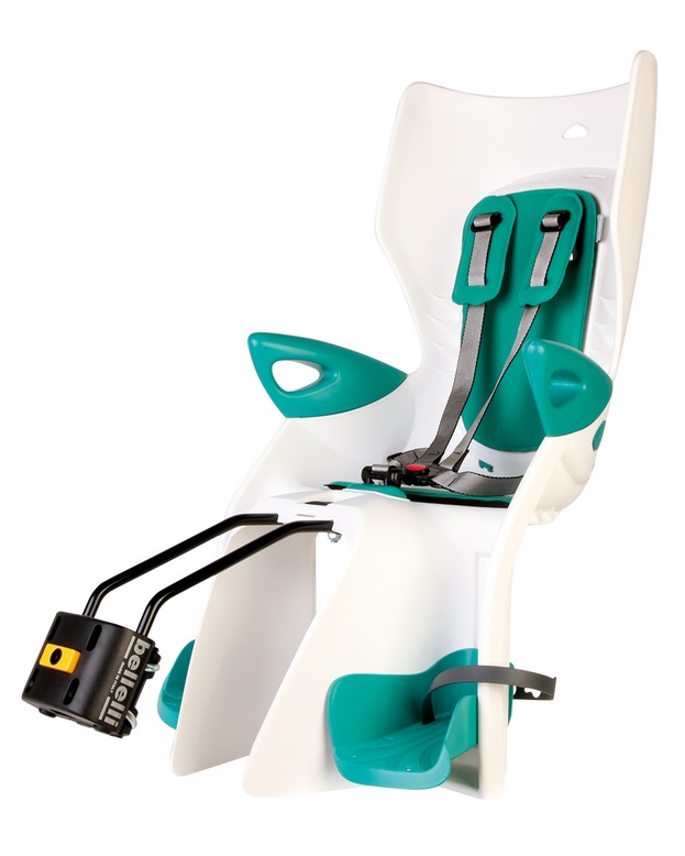 Детское велокресло BELLELLI Summer B-Fix на подседельный штырь, белый с бирюзовый вставкой
