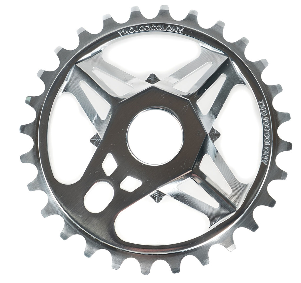 Звезда передняя COLONY Chris Courtenay design 25T для BMX серебристая. Изготовлена методом фрезеровки из цельного куска алюминия 6061-T6, что гарантирует максимальную жесткость при минимальном весе.