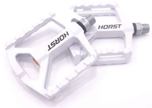 Педали 00-170871 алюм. H75 широкие, ось Cr-Mo +1 DU. литой шип 97*107*16мм, 395 г белые HORST NEW