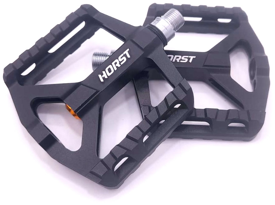 Широкие литые с шипами педали Horst H75 для горных и прочих велосипедов. Умеренный вес, широкая платформа для удобного катания в любой обуви.