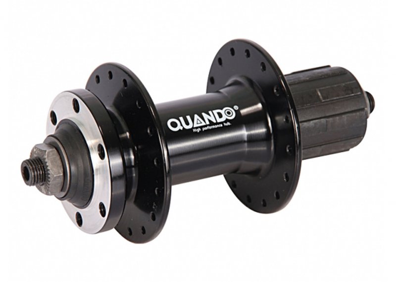 Задняя втулка под эксцентрик (эксцентрик в комплекте не поставляется). Имеет 36 отверстий для спиц, насыпные подшипники, крепление под 6-болтовый тормозной диск, совместима с кассетами на 8-10 скоростей. Цвет: чёрный. Производитель: QUANDO.