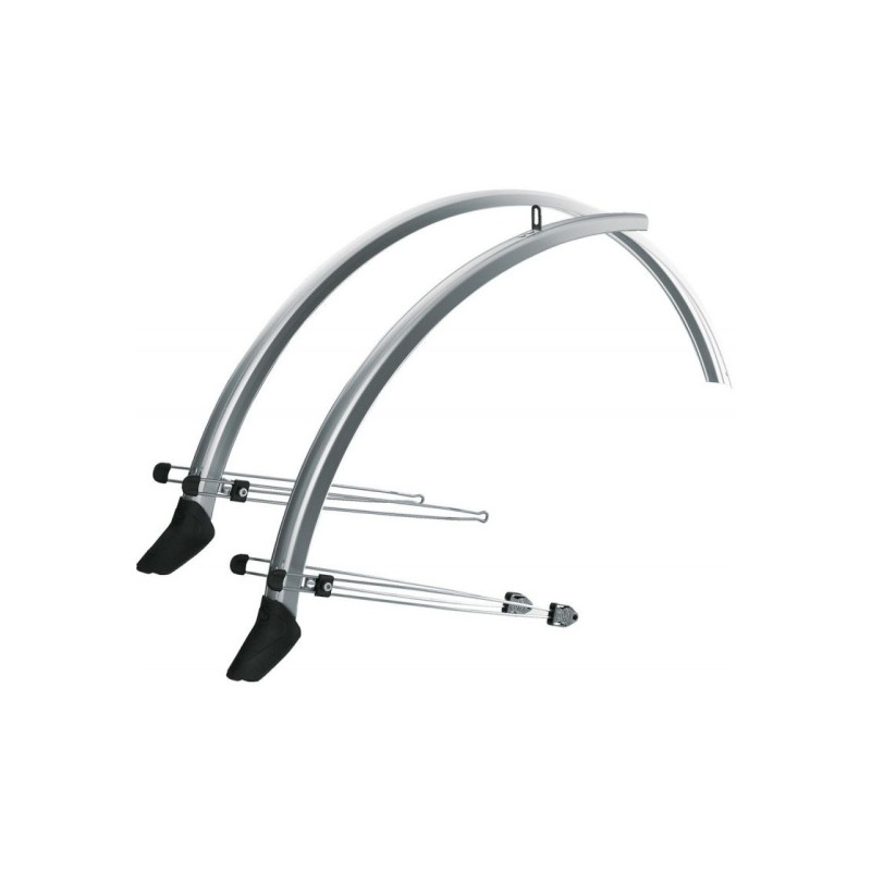 Комплект жёстких крыльев шириной 35 мм. для шоссейных велосипедов с колёсами размера 28". Крылья классической формы, дополненные брызговиками. Стальные стойки современного дизайна толщиной 3 мм. Фиксированные крепёжные элементы из нержавеющей стали. Дополнительная точка крепления надёжно фиксирует переднее крыло.