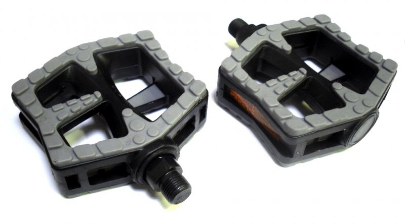 Педали пластиковые широкие, с шарикоподшипниками, с антискользящими накладками и отражателями, резьба 9/16''