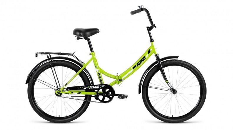 Складной городской велосипед ALTAIR CITY 24 версии 2019 года для комфортного катания в черте мегаполиса и тихим загородным дорожкам. Модель имеет складывающуюся раму, за счет чего хранить велосипед легко и просто в любом помещении или даже в шкафу или багажнике легкового автомобиля. Колеса диаметром 24 дюйма, односкоростная трансмиссия, классический ножной тормоз, защита цепи и громкий звонок - байк полностью готов к эксплуатации.