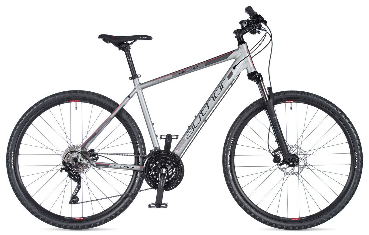 Мужской гибридный велосипед AUTHOR AIRLINE 700C 2020 модельного года подходит для катания по всем типам трасс и дорог. Модель оборудована трансмиссией с полным комплектом механики SHIMANO DEORE, 30 передач. Дисковые гидравлические тормоза TEKTRO, масляная вилка - RST Vita TnL с ходом амортизатора 80 миллиметров. Велосипед оснащается колесами 28 дюймов в диаметре с шинами AUTHOR Speed Master Kevlar.