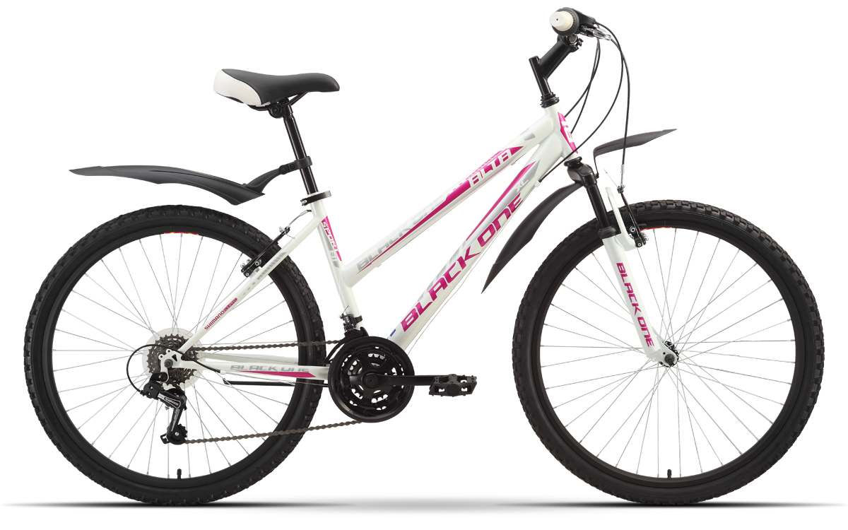 Доступный женский велосипед с амортизационной вилкой и 18-скоростной трансмиссией Shimano.