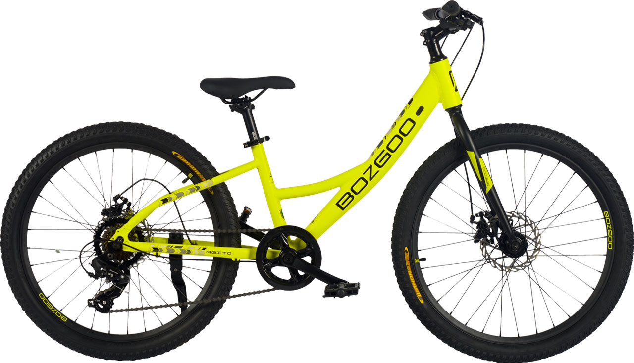 Подростковый горный велосипед BOZGOO Bambino 24 на 24" колесах с алюминиевой рамой, жёсткой вилкой, трансмиссией на 7 скоростей и и механическими дисковыми тормозами JAK.