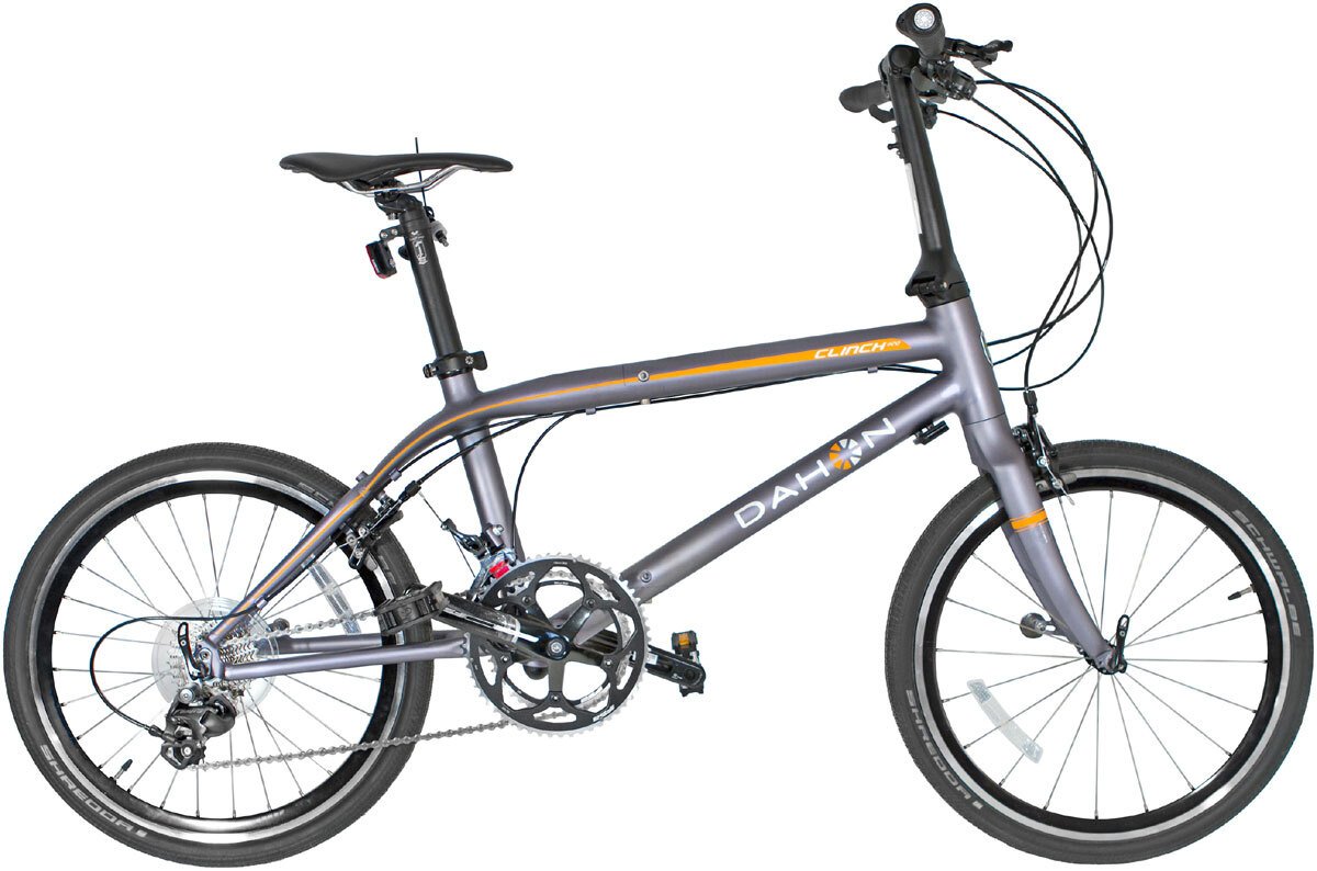 Dahon Clinch D20 – складной велосипед, не выглядящий таковым. В этой модели реализована идея "ломающейся рамы". Издалека смотрится как аппарат для скоростных прогулок по асфальтированным дорогам, но если присмотреться поближе, там можно разглядеть два тонких шва и отверстия под шестигранный ключ в раме. Эту модель стоит рассмотреть, в отсутствие возможности хранить дома настоящий шоссейник. Однако если быстро ездить очень хочется, Dahon Clinch станет удачным решением. Отметим оборудование Shimano Tiagra на 10 скоростей с сумасшедшим соотношением звёзд.