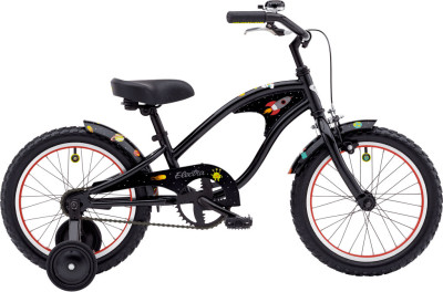 Starship 1 16" – велосипед-синглспид для будущего космонавта, ведь Starship – это «звездолет». Стильный черный велосипед Electra, украшенный космическим рисунками: от загадочных инопланетян до стремительно летящей ракеты. В комплекте идут боковые колеса, если юный велосипедист еще учится держать равновесие. А благодаря запатентованной технологии Flat Foot легко делать остановки – обе ноги можно поставить на землю, не наклоняя велосипед вбок. Спина остается ровной, а руки – расслабленными.