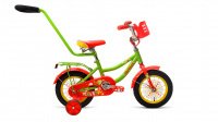 Первый педальный велосипед для самых маленьких (от полутора до трёх лет). Оснащён боковыми страховочными колёсами и ручкой на случай, если малыш устанет крутить педали. Надувные шины и мягкое седло обеспечат комфорт при езде по неровным дорогам. Изготовлен из прочной стали, руль с мягкими грипсами, исключающими проскальзывание, в комплекте корзинка и крылья.