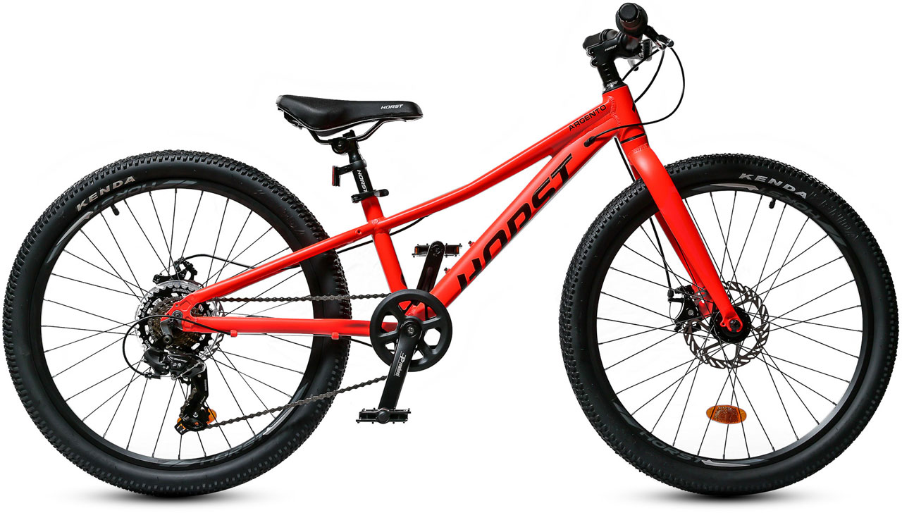 Подростковый горный байк Horst Argento 2026 предназначен для юных велосипедистов 9-12 лет, предпочитающих активное катание на велосипеде. В основе байка лежит легкая алюминиевая рама из сплава 6061, которая дополняется жесткой алюминиевой вилкой, что вкупе дает очень небольшой вес. 24-дюймовые колеса собраны на прочных двойных ободах и обуты в широкую – 2.1 дюйма – для такого диаметра колес резину Kenda. Трансмиссия на 7 скоростей – Shimano Tourney. Дисковые механические тормоза Yinxing обеспечивают отличную мощность торможения.