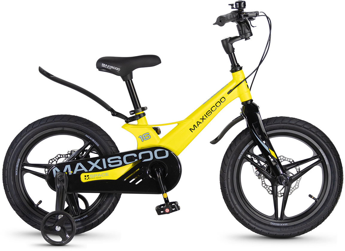 Велосипед Maxiscoo Space 16 Делюкс с легкой рамой из магниевого сплава и дисковыми тормозами – отличный детский байк для 5-6 лет для игр и катания во дворе, на даче, в городских парках и скверах. Жесткая вилка обеспечивает хорошую управляемость и стабильность во время движения, что позволяет детям чувствовать себя уверенно на любой дороге – асфальте или грунтовке. Дисковые тормоза гарантируют быструю и надежную остановку в любых условиях, что делает велосипед безопасным для детей. Седло и руль легко регулируются – можно настроить их высоту под рост ребенка. Литые обода придают синглспиду особый шик.