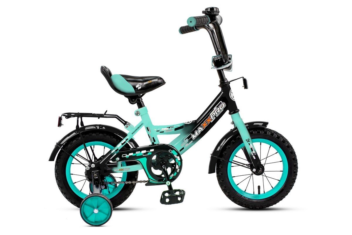 крашенный обод, крылья, спицы, багажник, звонок, стальная защита цепи, боковые колеса
