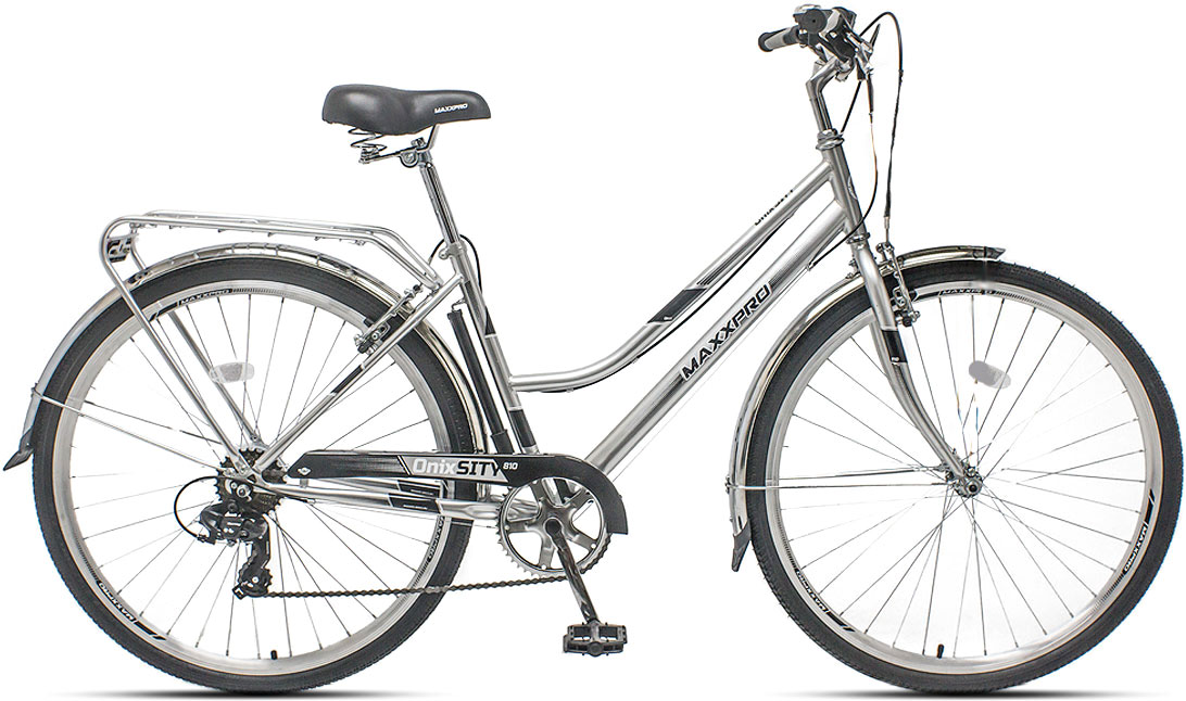 Комфортный городской велосипед Onix 810 2022 от MaxxPro подойдет для частых поездок по городу – велопрогулок в парке, за покупками, в гости к друзьям. Ситибайк собран на прочной стальной раме, оборудован трансмиссией на 7 скоростей для простого и беспроблемного преодоления подъемов. Ободные тормоза с хорошей модуляцией обеспечивают быстрое торможение. Багажник позволяет перевозить малогабаритные грузы. Полноразмерные крылья защищают от брызг из-под колес.