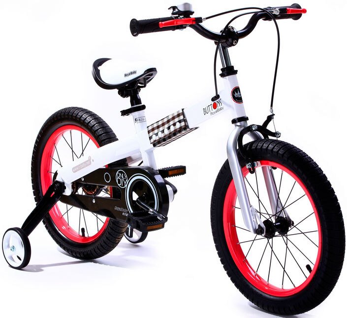 Royal Baby Buttons Steel 16" – велосипед для 4-6 летних детишек. Изделие произведено из прочной стали, имеет уникальный элемент декора из ткани на раме, а также регулируемое седло и нескользящий в руках руль. Колеса надувные, обладают алюминиевыми ободами для обеспечения маневренности велосипеда. На рифленых педалях Royal Baby Buttons Steel 16" есть катафоты. Насос и боковые колеса прилагаются.