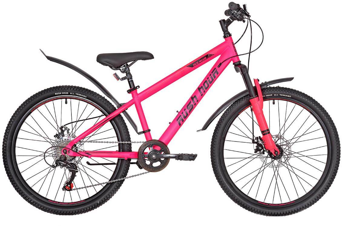 На подростковом велосипеде Rush Hour RX 405 24 2021 юный райдер ни в чем не уступит взрослым велосипедистам и сможет так же легко ездить не только по асфальту или грунту, но и по бездорожью. Раш Хоур RX 405 24 собран на базе стальной прочной рамы с внутренней проводкой тросов. Трансмиссия на 6 скоростей от компании Shimano позволяет легко и без перенапряжения мышц преодолевать подъемы. Картриджная каретка обеспечивает плавное вращение шатунов. Пружинно-эластомерная вилка с ходом 50 мм гасит вибрации, делает езду по пересеченной местности более комфортной. Страхуют юного велосипедиста дисковые механические тормоза, которые безотказно работают в любую погоду и не зависят от состояния ободов.