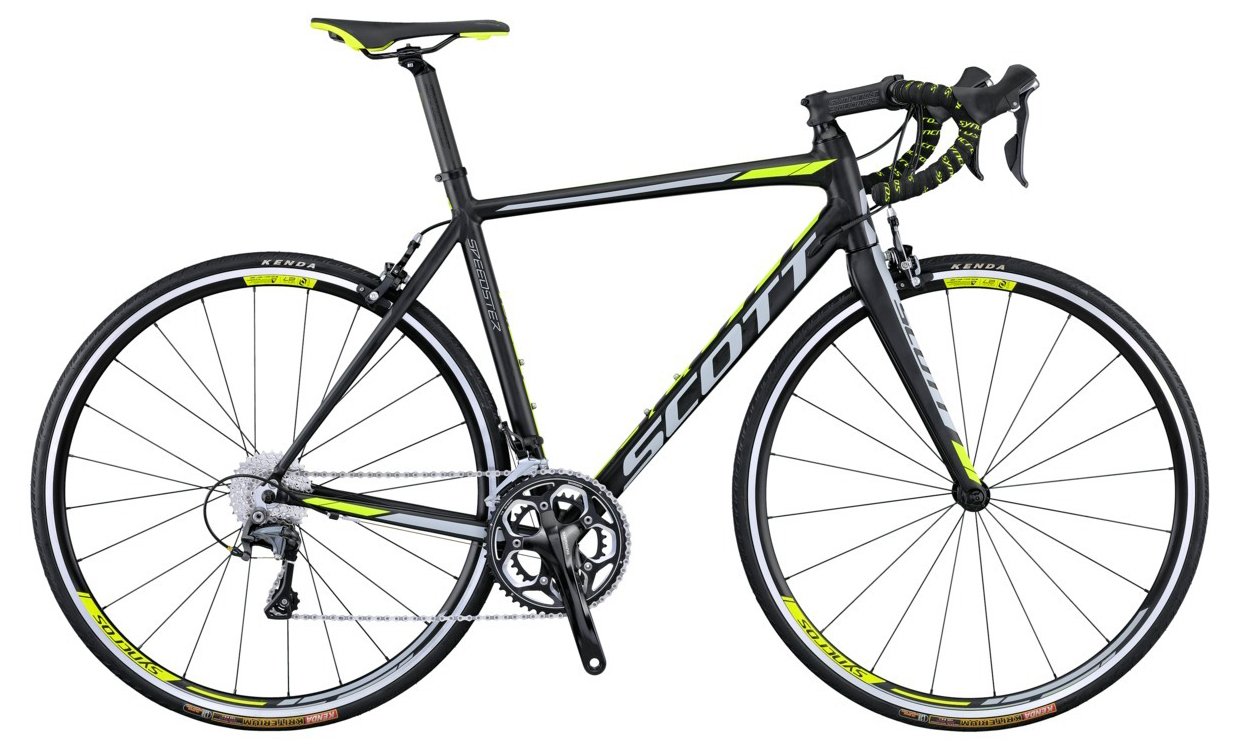 Шоссейный велосипед на алюминиевой раме с хорошей аэродинамикой от швейцарской фирмы Scott. Подойдет для любительских стартов, тренировок и длинных маршрутов по равнинным и горным шоссе. Установлен качественный вилсет с втулками на насыпных подшипниках, трансмиссия продвинутого профессионального уровня с карбоновыми манетками и надежные ободные тормоза.