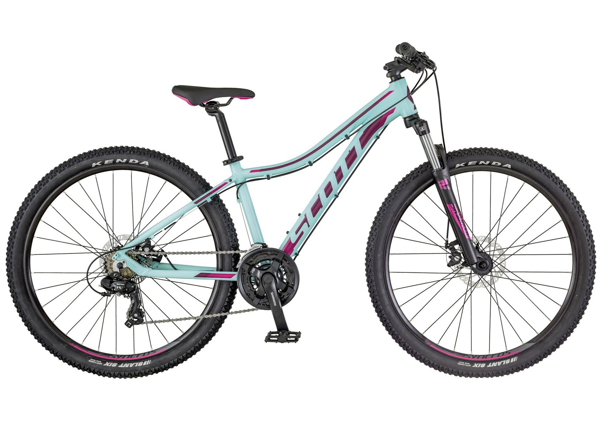 Женский горный велосипед с колёсами диаметром 27,5 дюймов от известного американского бренда Scott. Идеальный компаньон для прогулок по пересечённой местности. Среднеходная амортизационная вилка с блокировкой хода поглощает удары и надёжно удерживает контакт переднего колеса с поверхностью при езде по неровным дорогам. Мощные дисковые тормоза обеспечивают быструю остановку в любых ситуациях. Установлена трансмиссия верхнего любительского уровня.
