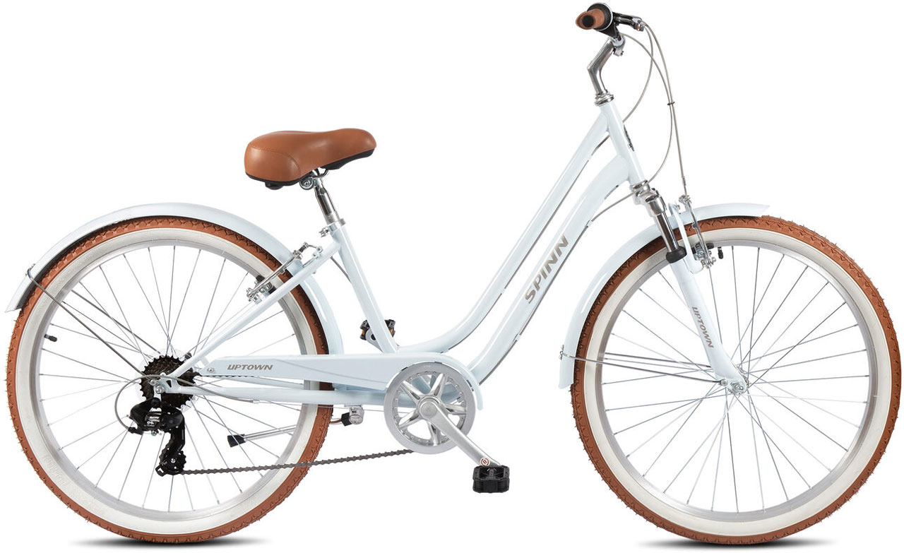 Велосипед Spinn Uptown 7D Step Thru 26 – это идеальный выбор для женщин, которые ценят комфорт и стиль. Сочетание элегантного дизайна с современными технологиями делает эту модель идеальным компаньоном для городских или загородных прогулок. Широкое и комфортное седло в сочетании с амортизационной вилкой подарят удобство при езде. Руль и седло регулируются по высоте и наклону для оптимальной посадки. Цепь велосипеда дополнительно защищена кожухом и не испачкает одежду. Семискоростная трансмиссия Shimano позволяет легко подниматься в подъемы. Классические ободные тормоза – надежные и простые в обслуживании.