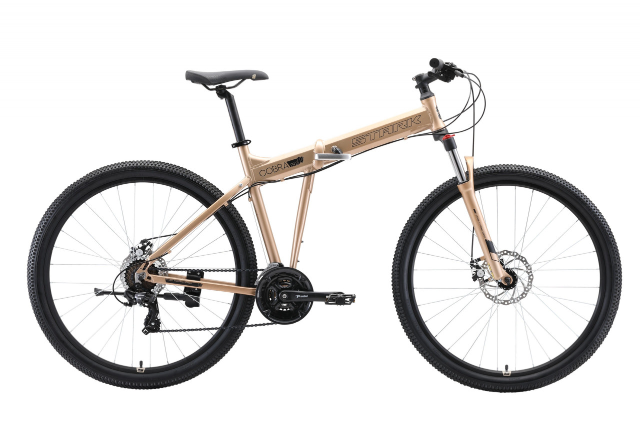 Если вы ищете удобный байк с рамой хардтейла, который можно возить в багажнике седана и хранить в кладовой или на балконе, то Cobra 29.2 D 2020 от российской компании STARK - то, что вполне может вам подойти. Этот складной велосипед на 21 скорость обладает такой же проходимостью и управляемостью, как горный байк. Пружинно-эластомерную вилку можно подстроить под свой вес и блокировать при езде в гору. На нем будет комфортно ездить и по городу. А самое главное - вы можете прихватить его с собой куда угодно, путешествуя на автомобиле.