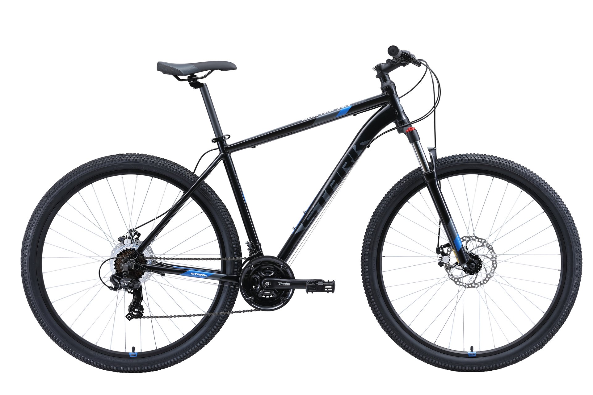 Горный велосипед Hunter 29.2 D 2020 от Stark будет одинаково хорош на городских дорогах и бездорожье. Прочная и легкая рама из алюминия с современной геометрией выдерживает значительные нагрузки. Пружинно-эластомерная вилка эффективно гасит удары и скачки при езде по сложному рельефу. Колеса на 29 дюймов с широкими покрышками и двойным ободом обеспечивают мощное сцепление с дорогой. Трансмиссия на 21 скорость позволит быстро разогнаться, а дисковые механические тормоза – четко остановиться на любой поверхности.