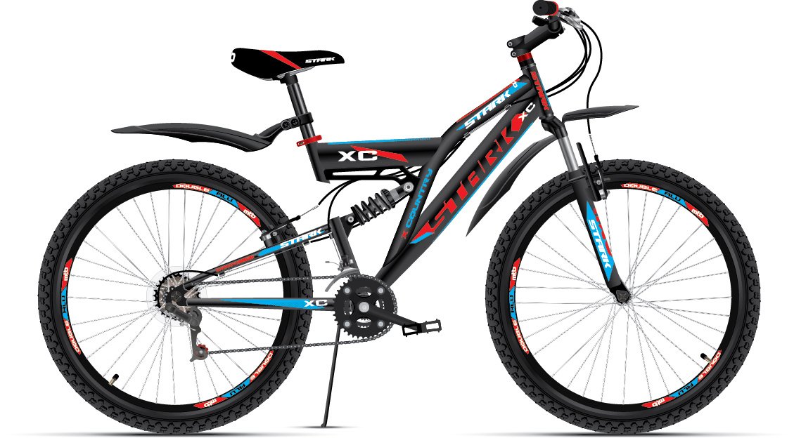 Прогулочный двухподвес с навеской начального любительского уровня и ободными тормозами. Поставлены подножка, переднее и заднее крыло.
