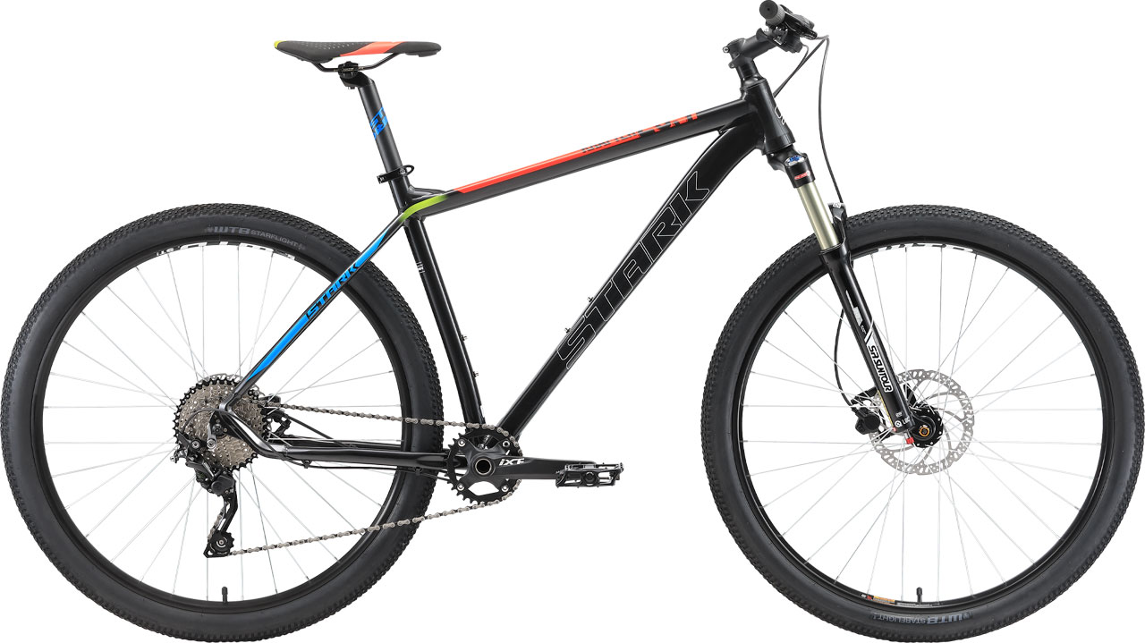 Горный велосипед Krafter 29.7 HD 2022 от Stark собран на алюминиевой раме - легкой, но прочной за счет двойного баттирования рамных труб в самых уязвимых местах, швы тщательно отшлифованы. Хардтейл оснащен навеской полупрофессионального уровня. Воздушно-масляная вилка с ходом 100 мм, 10-скоростная трансмиссия с задним переключателем и манетками Shimano Deore, цепкие покрышки и дисковая гидравлика Shimano, накатистые 29-дюймовые колеса обеспечат уверенное прохождение бездорожья, контроль даже на сложной непредсказуемой лесной тропе. Функция блокировки хода вилки позволяет воспользовавшись преимуществами жесткой вилки, ездить по асфальту города, эффективно расходуя каждый килоджоуль энергии.