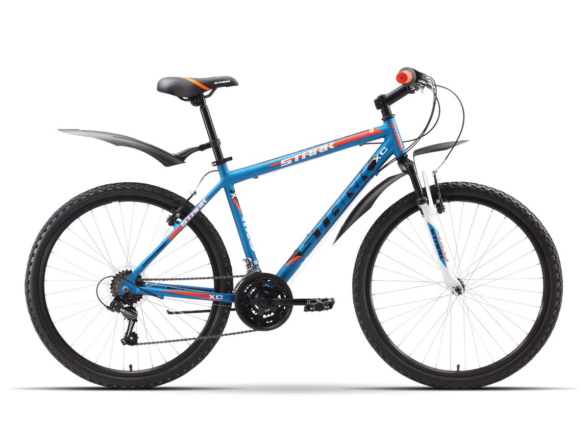 Горный велосипед с жесткой вилкой, рамой из алюминия и навеской начального уровня. Установлены ободные тормоза, подножка и крылья.