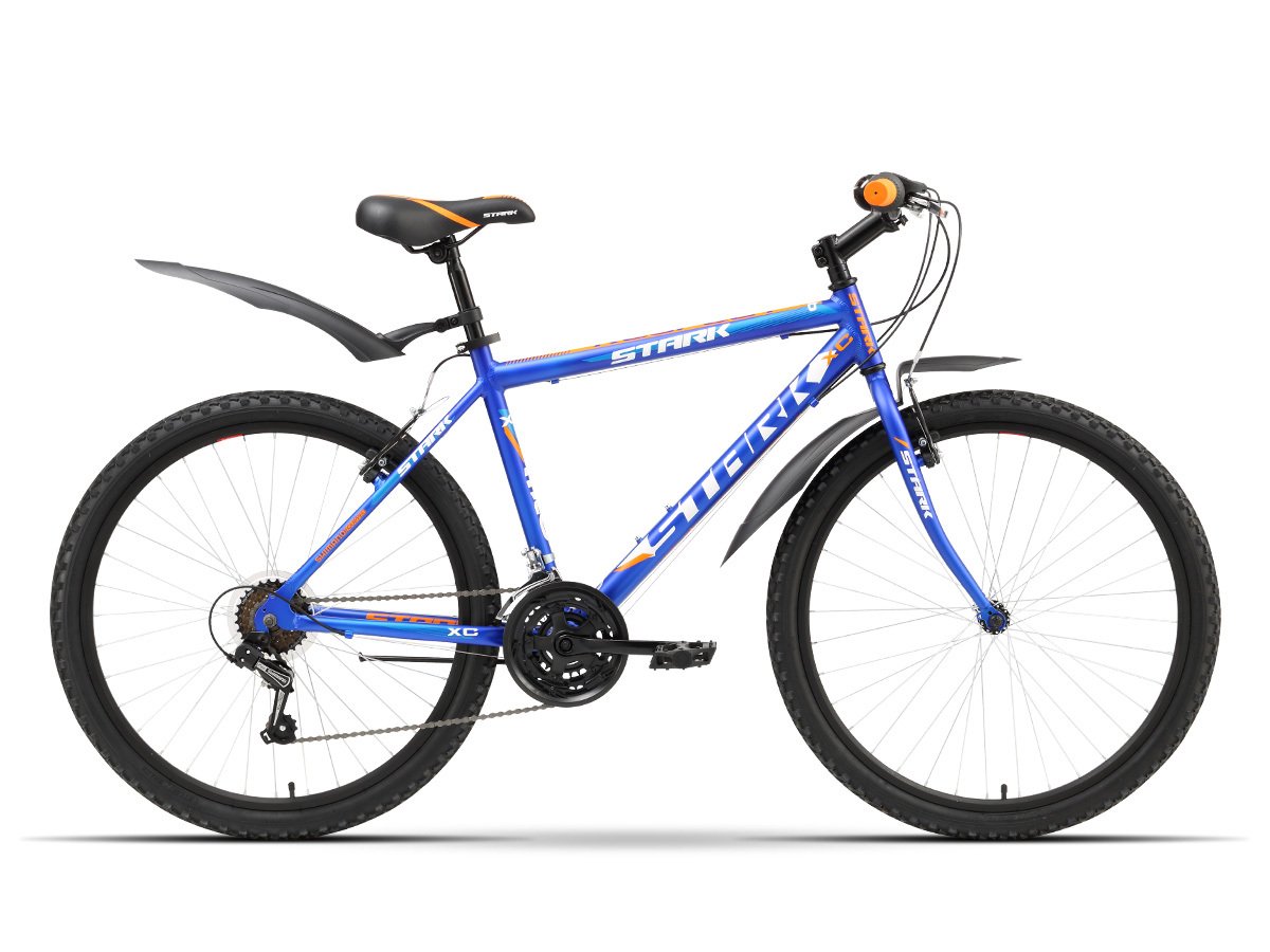 Прогулочный горный велосипед с жесткой вилкой, рамой из алюминия и навеской начального уровня. Установлены ободные тормоза, подножка и крылья.