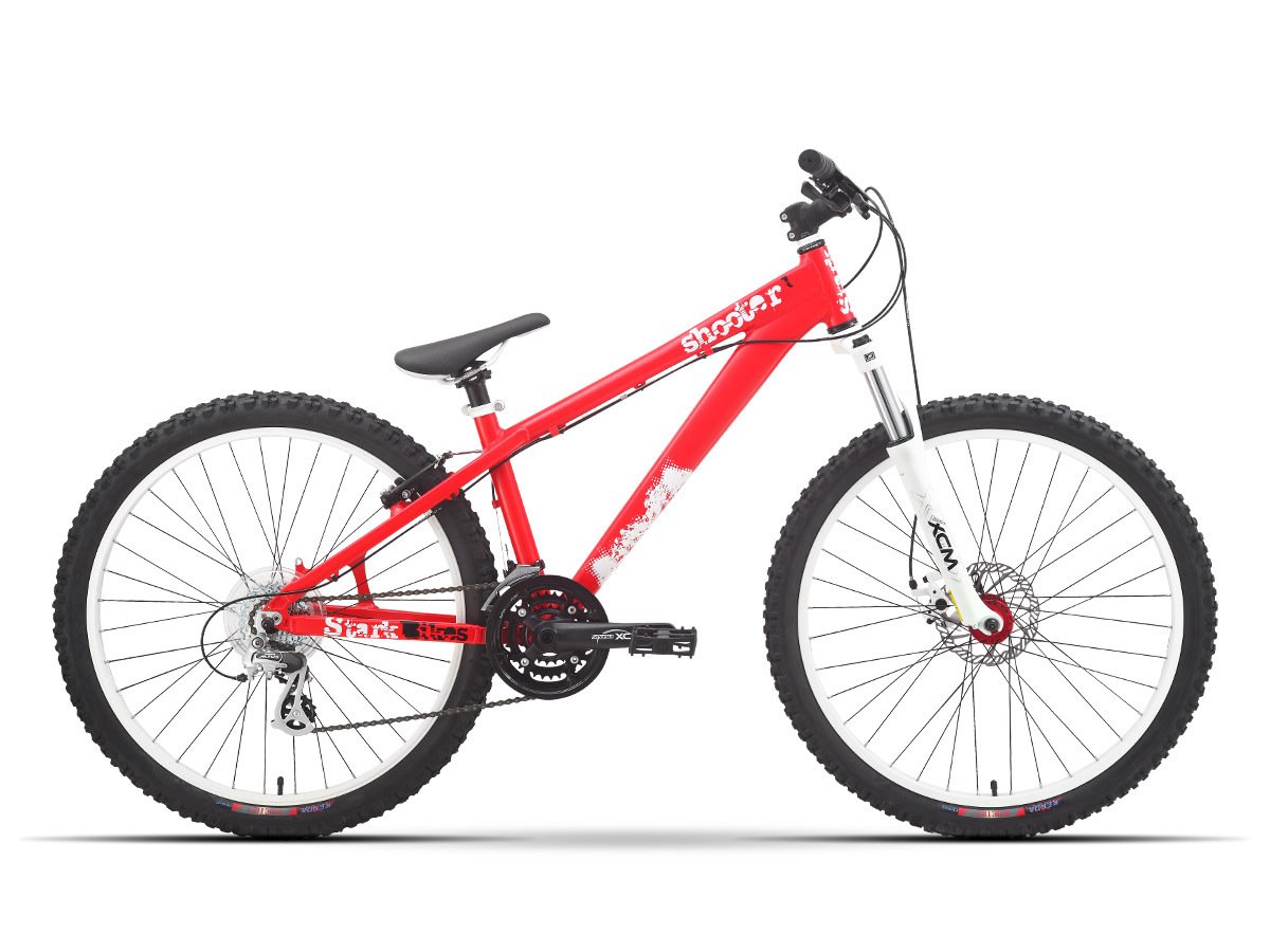 Экстремальный маунтинбайк начального уровня на раме из алюминия с двумя дисковыми тормозами и усиленными двойными ободами.