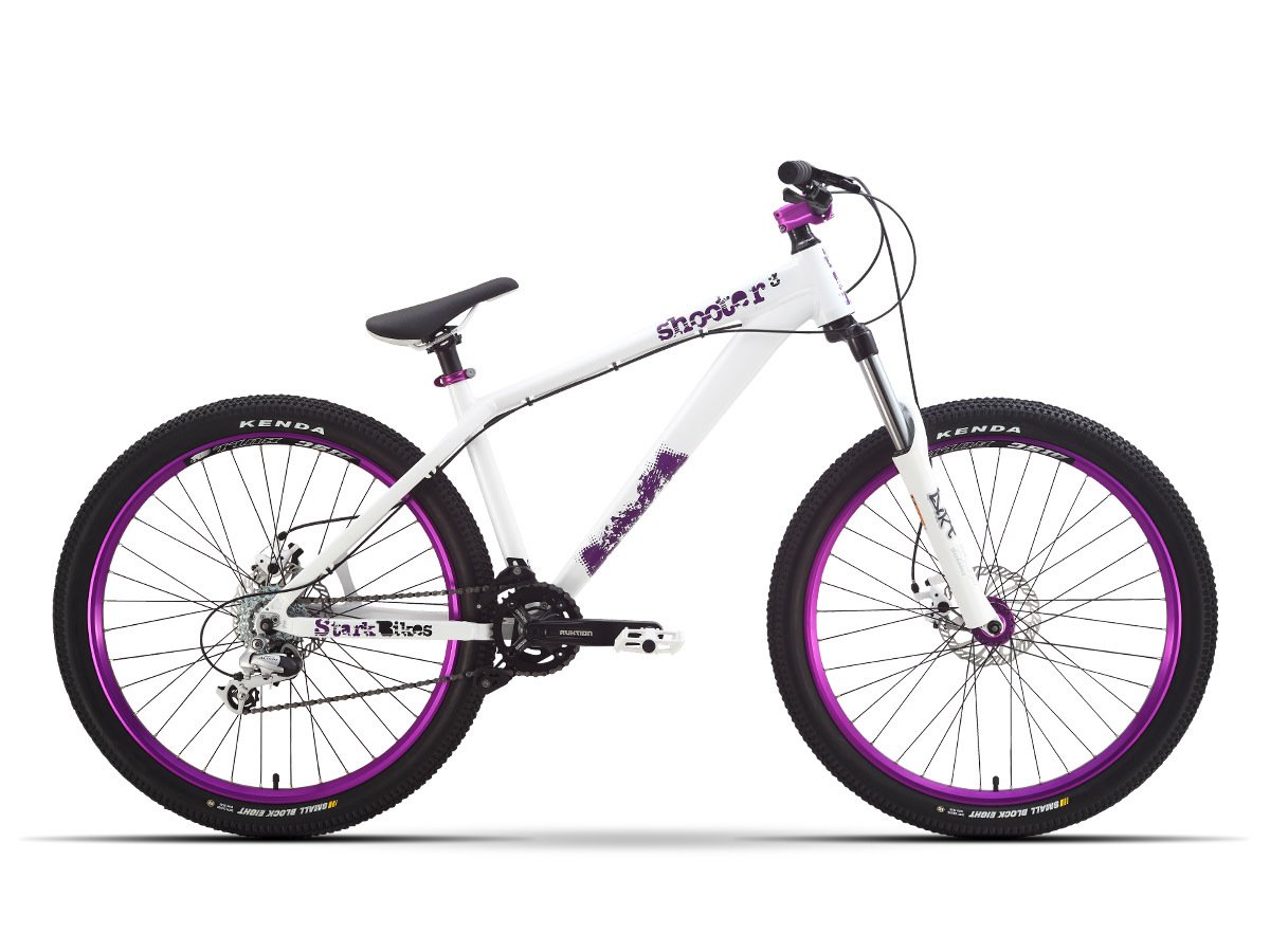 Экстремальный маунтинбайк любительского уровня на раме из алюминия с семью скоростями, двумя дисковыми тормозами и усиленными двойными ободами.