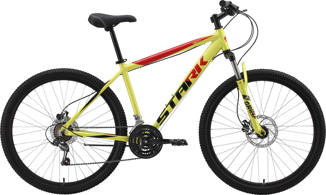 Горный велосипед Tank 27.1 HD 2023 от Stark – яркий представитель кэжуал МТВ для активного и комфортного катания по асфальтированным или грунтовым дорогам, выездов на легкое бездорожье. Трансмиссия на 21 передачу, передний амортизатор с небольшим ходом 60 мм, маневренные колеса и мощные гидравлические тормоза делают Старк Танк 27.1 HD универсальной “лошадкой”, на которой райдер сможет без чрезмерных усилий преодолевать подъемы, легко проезжать разбитые, каменистые участки дороги, почти мгновенно останавливаться вне зависимости от дорожного покрытия и погоды.