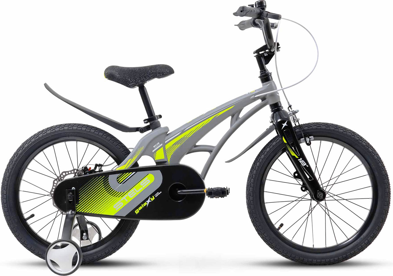 Stels Galaxy 18 – детский велосипед для 6-8 лет на раме из магниевого сплава с ободами из магния. С этим байком маленький райдер сможет часами напролет кататься, не уставая. Магниевая рама отлично гасит вибрации, при этом она прочная, а по легкости даже превосходит алюминиевые. За безопасную своевременную остановку начинающего велосипедиста отвечают сразу два тормоза – передний ободной и задний дисковый механический. Полноразмерная защита цепи убережет от быстрого загрязнения механизма, крылья защитят от грязи одежду. Стелс Галакси 18 – синглспид, с которым ребенку будет комфортно и весело, а родителям – спокойно.