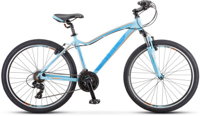 Женский горный велосипед STELS Miss 6000 – легкий и надежный MTB с колесами диаметром 26 дюймов для катания, как в городе, так и за его пределами по дорогам с различным покрытием. Модель оснащена полным комплектом долговечной механики Shimano, удобными V-образными тормозами, амортизационной вилкой с ходом 60 миллиметров и удобным эргономичным седлом. Система переключения передач на 18 скоростей.