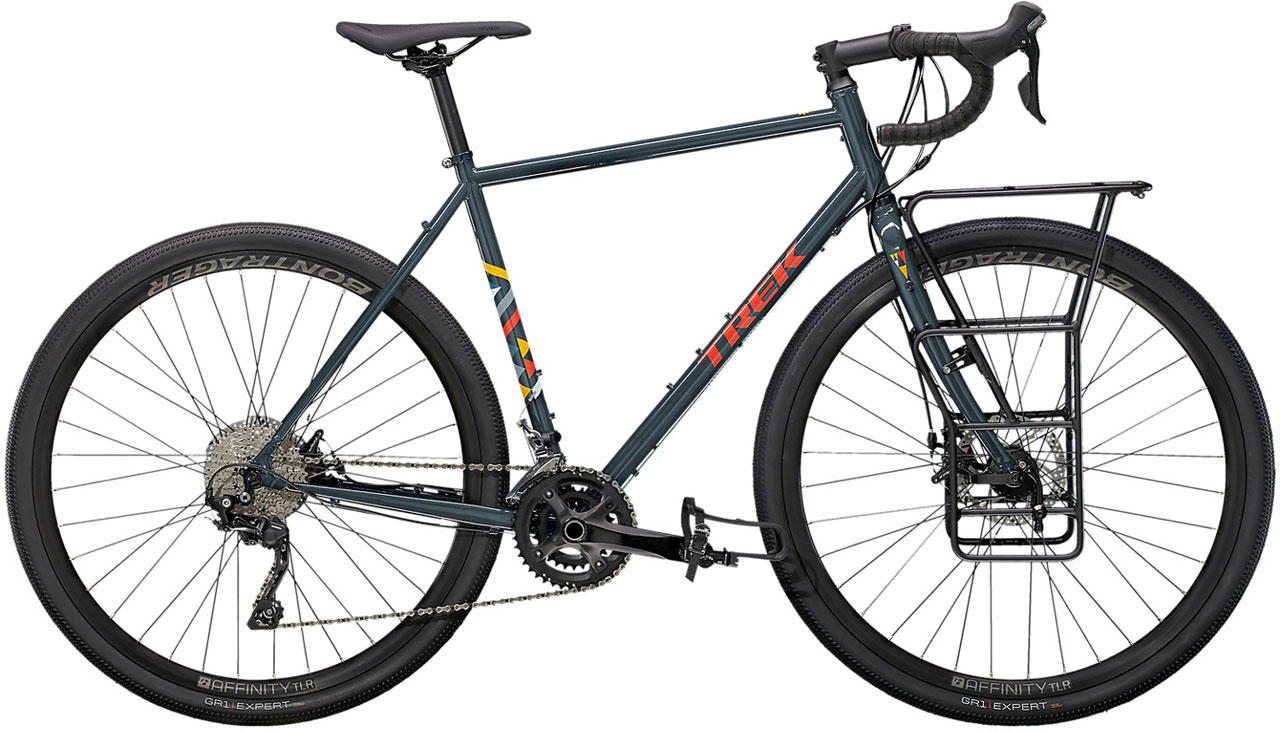 Trek 520 Grando – это стальной приключенческий байк, созданный для поездок по бездорожью. Что-то среднее между классическим турингом Trek 520 и грэвелом. У этого велосипеда посадка для быстрого «гравийного рандоннеринга». Прочные детали идеально подходят для езды, как по шоссе, так и по гравию: трансмиссия шоссе/гравий, дисковые тормоза, горные втулки. В том числе и с велосумками: установленный передний багажник подразумевает байкпакинг.
