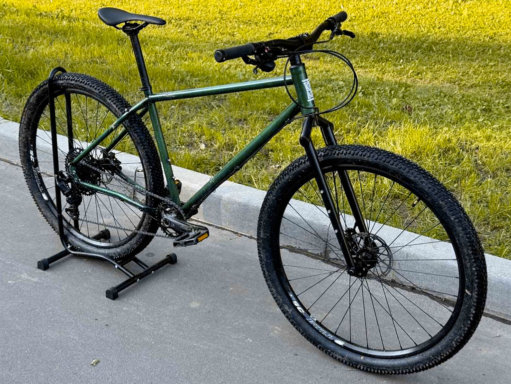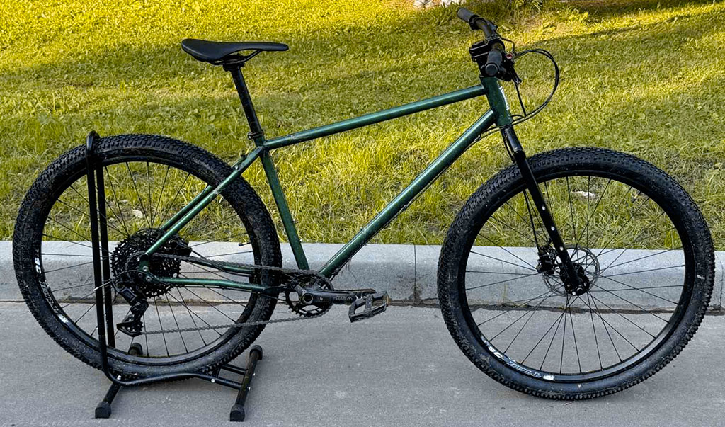 TSB Бурелом - второй хромолевый велосипед для путешествий от Антона Степанова. Первая главная особенность TSB Бурелом - шипастые покрышки шириной 2.3", при зазорах до 2.8". Вторая главная особенность - гидравлические тормоза Shimano. Задний переключатель и ручки переключателя от Microshift, система 1×10. Рулевая 1-1/8". Велосипед доступен в двух размерах.