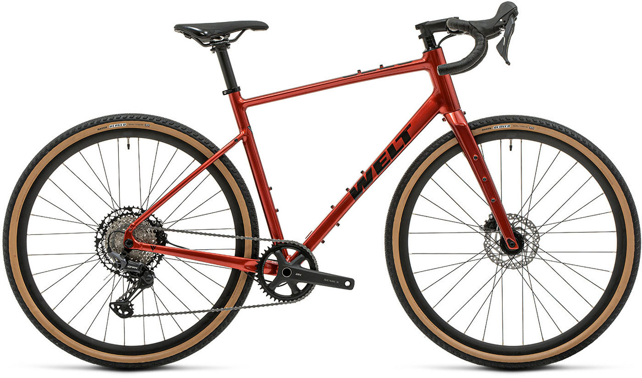 Welt G110 - это топовая модель в линейке велосипедов для гревела серии G. Он оснащен легкой алюминиевой рамой. Компенсация швов рамы и внутренняя проводка тросов делают вид рамы более эстетичным, швы практически не заметны, а троса также защищены от повреждений и загрязнений. Карбоновая вилка также обладает очень малым весом и снижает вибрации во время езды, уменьшая усталость рук. Важная особенность всех велосипедов серии G - это полые оси. Они создают более жесткое соединение колеса с рамой, что увеличивает комфорт во время езды.