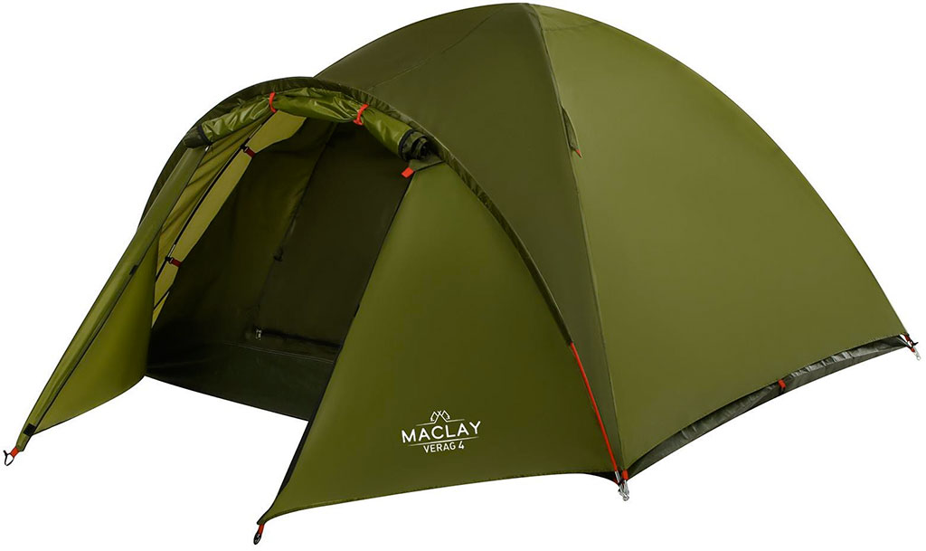 Палатка подходит для комфортного размещения 4 человек. Влагостойкость тента составляет 2000 мм водного столба, поэтому палатка защищает от влаги в условиях непродолжительных и моросящих дождей. При сильных или долгих ливнях тент может пропустить влагу.